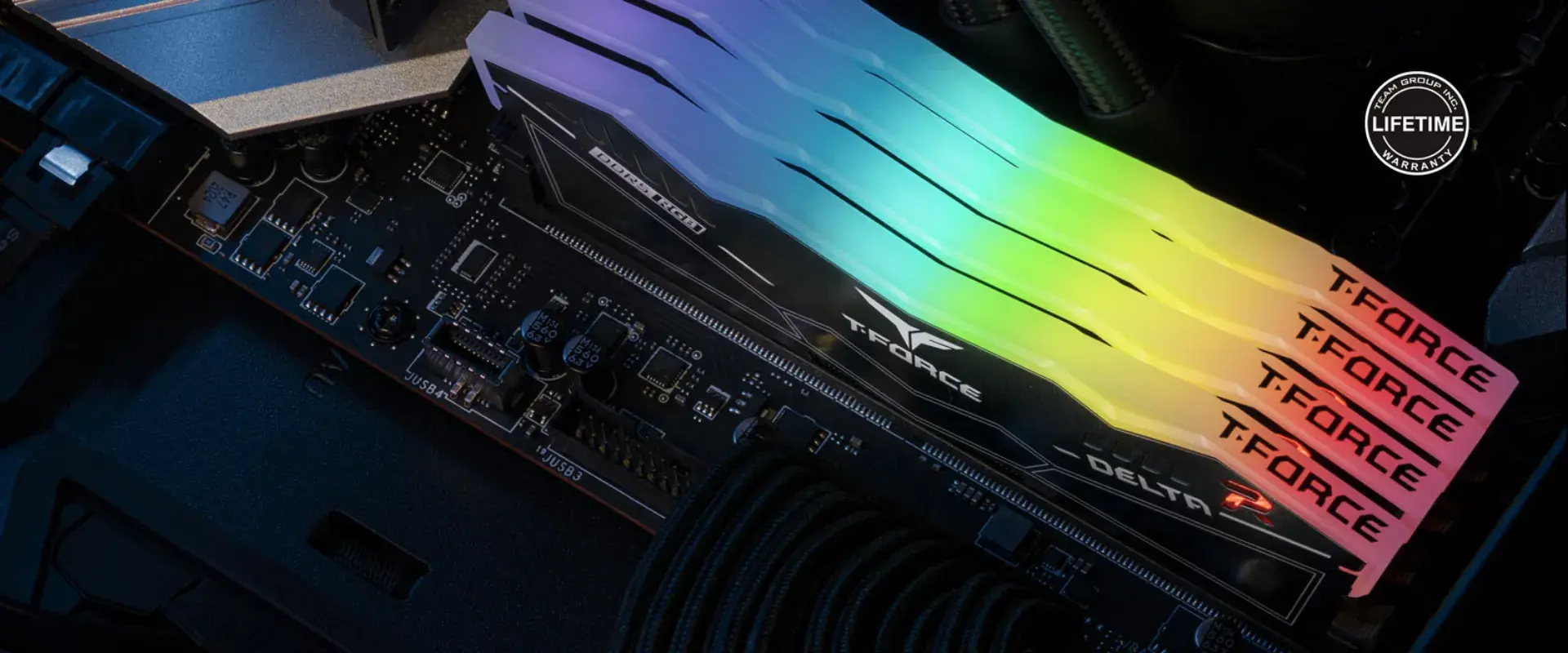 Las dimensiones físicas de T-FORCE DELTA TUF Gaming Alliance RGB DDR5 se han optimizado con motivos de aviones sigilosos e imbuido con los elementos de diseño de TUF Gaming Alliance para ofrecer un diseño optimizado, colores RGB, iluminación ultra ancha de 120° para que los gamers puedan disfrutar de una experiencia visual única y refrescante.